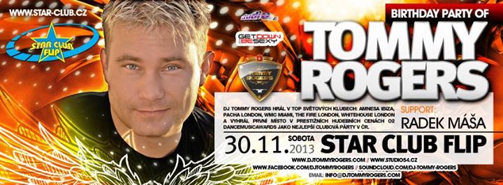 Narozeniny Dj Tommy Rogerse ve Star Klub Flip Zlín v sobotu 30.11.2013.