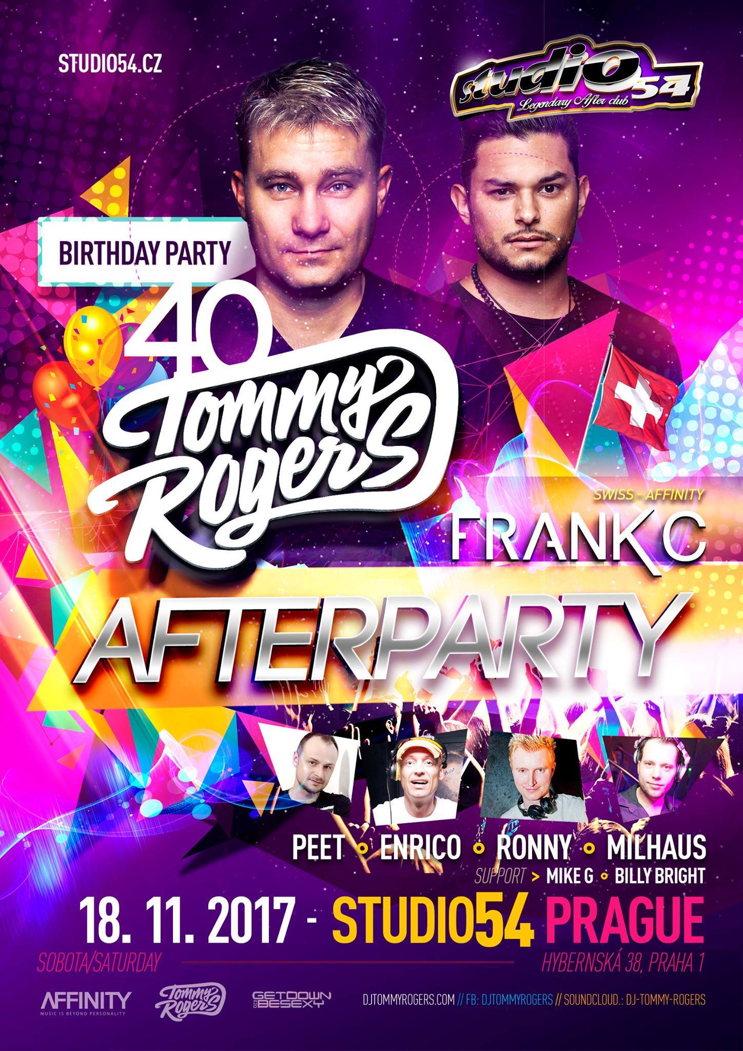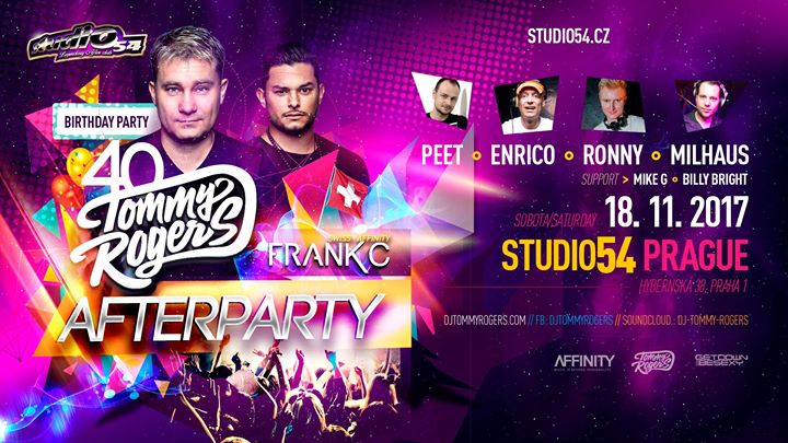 Afterparty proběhne v sobotu ráno 18.11.2017 od 2:00 ve Studiu 54
