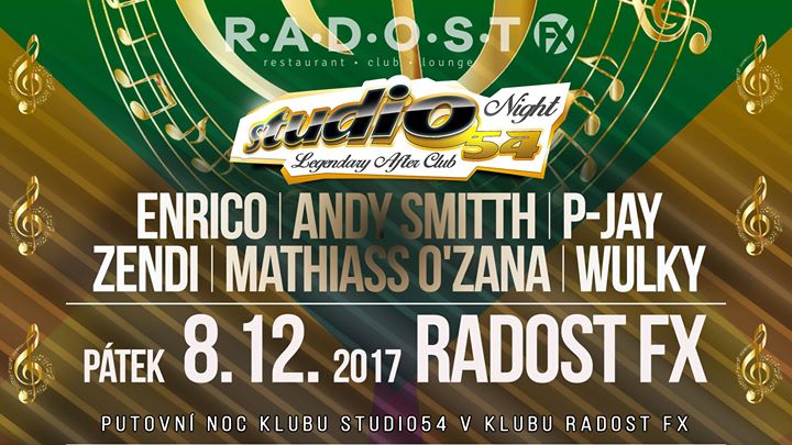 DJ Enrico, Andy Smitth, MATHIASS O'ZANA, DJ P-Jay (official), ZENDI a WULKY roztančí v pátek 8.12.2017 pražský klub RADOST FX na rezidentním eventu Studio 54 Night!
