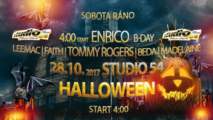 Halloween afterpárty po všech Halloween párty v Praze je tradičně u nás ve Studiu, kde oslaví své narozeniny náš DJ Enrico. Fakt strašidelně zahrají Madelaine, Dj Tommy Rogers, DJ LeeMac Official, Dj Faith a Be Da a to vše v sobotu ráno od 4:00. Takže hoď na sebe něco votřesnýho a těšíme se na...