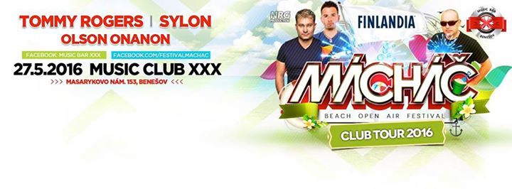 Finlandia Mácháč Club Tour 2016 - Music Club XXX pátek 27.5.2016. Dj's Tommy Rogers, Sylon a Olson Onanon in da mix! Pro 200 lidí máme dárek v podobě namixovaného CD!