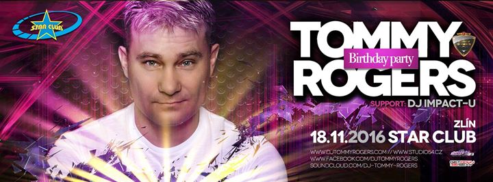 V pátek 18.11.2016 proběhne narozeninová party Dj Tommy Rogerse ve Star Club Flip Zlín.